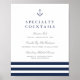 Designed to match our Nautical Mix wedding collection, this elegant coastal style sign is perfect for placing at the bar to share your speciality cocktail creations with guests. Personalise the header and and six text fields, adorned with a trio of nautical navy blue stripes and an anchor at the top.