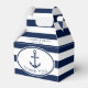 A fully customisable and fun treat box with a unique nautical theme. It features an anchor centred in the middle in a vibrant navy and white colour scheme. Your text details circle around the edges. Bold navy stripes cover the backdrop.