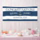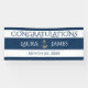 Designed in Nautical Navy with White Stripes and a silver Anchor, this Wedding Reception Congratulations Banner is easy to personalise with the Bride and Groom's Names and Wedding Date. Simply replace our sample text using our easy template. It's fast and easy. Can be purchased with hanging accessories for outdoor or indoor use.
