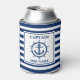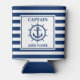 Nautical Anchor Wheel Striped Captain Name Can Cooler