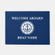 Nautical Anchor Rope Wheel Welcome Aboard Your Boat Name Door Mat Navy Blue and White