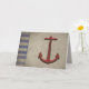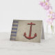Blue nautical stripes with a compass and red anchor for blank note card.