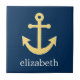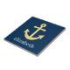 Nautical Anchor with Navy Yellow Chevron Pattern Ceramic Tile