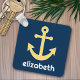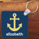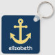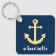 Nautical Anchor with Navy Yellow Chevron Pattern Key Ring