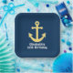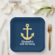 Nautical Anchor with Navy Yellow Chevron Pattern Paper Plate
