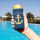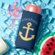 Nautical Anchor with Navy Yellow Chevron Pattern Seltzer Can Cooler