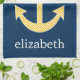 Nautical Anchor with Navy Yellow Chevron Pattern Tea Towel
