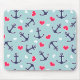 Nautical Anchors and Hearts Pattern Mouse Pad