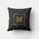 Nautical Anchors Pattern Black and Gold Monogram Cushion