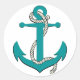 Nautical aqua blue silhouette anchor rope classic round sticker