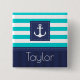 Nautical Aqua Navy Stripes Personalised Name 15 Cm Square Badge