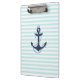 Nautical Aqua & White Stripes Navy Blue Anchor Clipboard