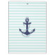 Trendy light blue & white stripes pattern with navy dark blue anchor in the middle.