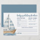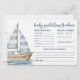 This horizontal Baby Predictions & Advice card is designed with a playful nautical theme, perfect for a "Baby on Board" shower or any ocean-inspired celebration. On the left side, a classic blue and white sailboat sits above a soft wash of watercolor water, adding a gentle seaside touch without overwhelming the layout.