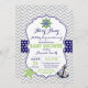 Nautical Baby Shower Invitation. Navy Blue, Green and Gary. Gary Chevron background. For further customisation, please click the "Customise it" button and use our design tool to modify this template.