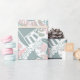 This wrapping paper features a fun summer pattern of nautical elements including anchor, seagull, starfish and many more, all in soft sage green with swirls and wave accents in powder blue and peach pink. Search ID839 and ID840 to see other products with this design and additional colour options.