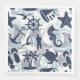 This paper napkin features a fun summer pattern of nautical elements including anchor, seagull, starfish and many more, all in navy blue with swirls and wavy aqua blue accents. Search ID839 and ID840 to see other products with this design and additional colour options.