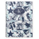 This lined notebook features a fun summer pattern of nautical elements including anchor, seagull, starfish and many more, all in navy blue with swirls and wavy aqua blue accents. Add your name and/or other text using the provided template. Search ID839 and ID840 to see other products with this design and additional colour options.