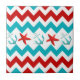 Nautical Beach Red Teal Chevron Anchors Starfish Tile