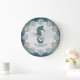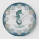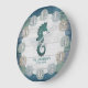 Nautical Beach Wood and Seahorse - Dark Blue Teal Large Clock