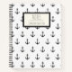 Nautical Black White Anchor Pattern Personalised Notebook