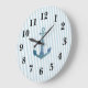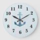 Nautical Blue Anchor Stripe Preppy Large Clock