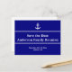 This white and navy blue family reunion save the date has a white boat anchor at the top. The text in the middle currently reads 'Save the Date Anderson Family Reunion'. You can customise your save the date with the family's name, reunion date, and place for the reunion.