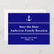 Nautical Blue and White Anchor Text Family Reunion Announcement Postcard