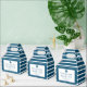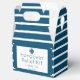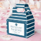 Perfectly classic nautical ocean blue and white seersucker striped hangover relief kit favour box that is customisable.