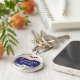 This keychain features a nautical blue bridesmaid dress, matching necklace and bouquet of flowers. Personalise this necklace to give as a thank you gift. These make a good keepsake for the maid of honour, bridesmaid and other members of the bridal party. The colour theme and flowers go well with a nautical, coastal, or navy blue wedding.