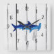 Nautical Blue Hammerhead Shark Shiplap Rustic Square Wall Clock