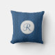 Nautical Blue Monogram Thin Chevron Pattern Cushion