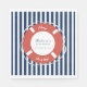A simple navy blue and white striped pattern with personalised text. An ideal nautical theme design for a baby boy shower paper napkin. Customise the text and make it your own. View matching items in this collection.