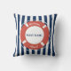 Nautical Blue Striped Welcome Aboard Boat Name Cushion