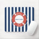 Nautical Blue Striped Welcome Aboard Boat Name Mouse Pad