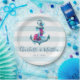 Nautical wedding paper plates design featuring anchor with flowers on a blue stripes background.