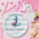 Nautical Blue Stripes Watercolor Anchor Wedding Paper Plate