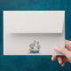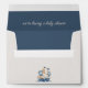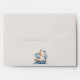 This cute envelope features an adorable sailing ship in shades of nautical blue on the front and back. Personalise the inside top flap with your choice of special text. Matching baby shower invitation is available.