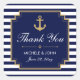 Customise this stylish modern Nautical Wedding Thank You Favours Stickers. Blue and white striped design, with an anchor, set as a template for an easy customisation on a dark blue. Below are links to a matching Wedding Invitation, RSVP, Program Cards, Guest Information Directions Card, Bridal Shower Invitation, Rehearsal Dinner Invitation and Thank You Tag Cards.