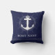 Nautical blue white Anchor Throw Pillow