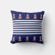 Elegant lighthouse pattern, blue and white stripes on navy blue Throw Pillow.