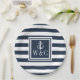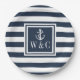Nautical Boat Anchor Monogram Navy Blue Stripe Paper Plate