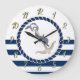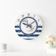 Nautical Boat Name,Anchor Dolphin Blue Striped Large Clock