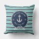 Nautical Boat Name Anchor Rope Teal Blue Welcome Cushion