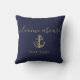 Nautical Boat Name Navy Blue Gold Welcome Aboard Cushion