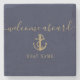 Nautical Boat Name Navy Blue Gold Welcome Aboard Stone Coaster