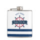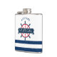 Nautical Boat Wheel, Navy Blue Striped Hip Flask
