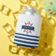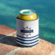 Nautical Boat Wheel, Navy Blue Stripes Can Cooler