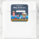 Nautical Boy Bear Red and Navy Baby Bookplate Square Sticker