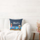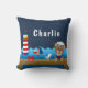 This cute and fun pillow can be personalised with a name. It features a nautical sailor boy bear on a wooden deck with a seagull and a crab. In the background there is a red and white lighthouse, a cute bird on a sailboat, ocean waves and a navy blue starry night sky.